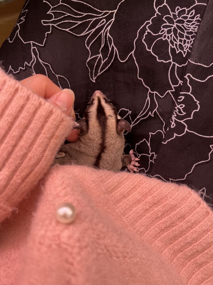私の洋服の中にすぐに潜り込むモモンガたんキュンすぎる🥰