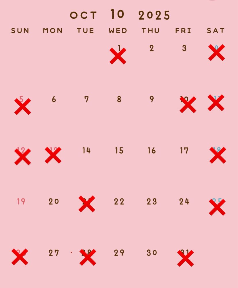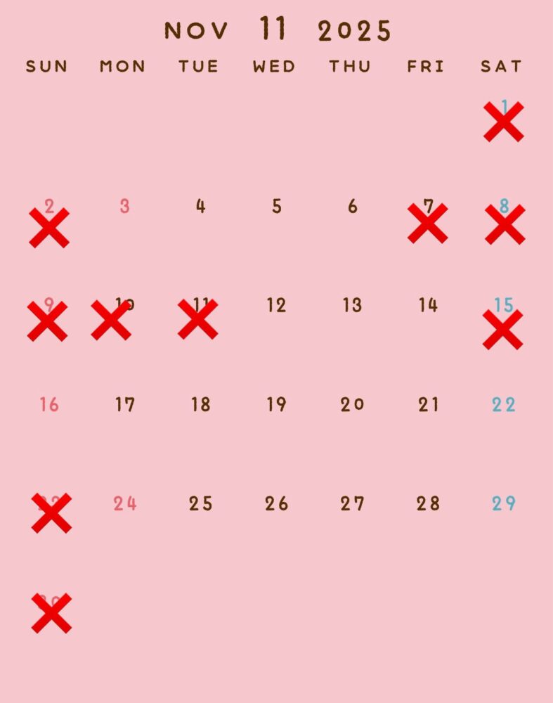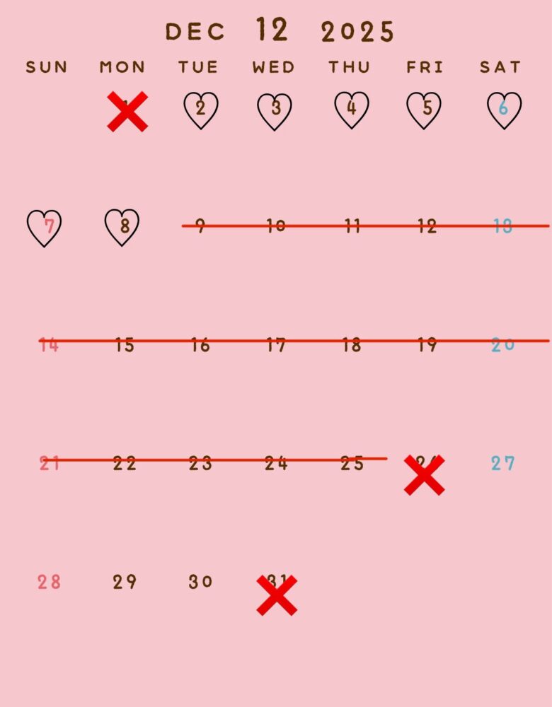 12月は赤い斜線とバツは空いてません!