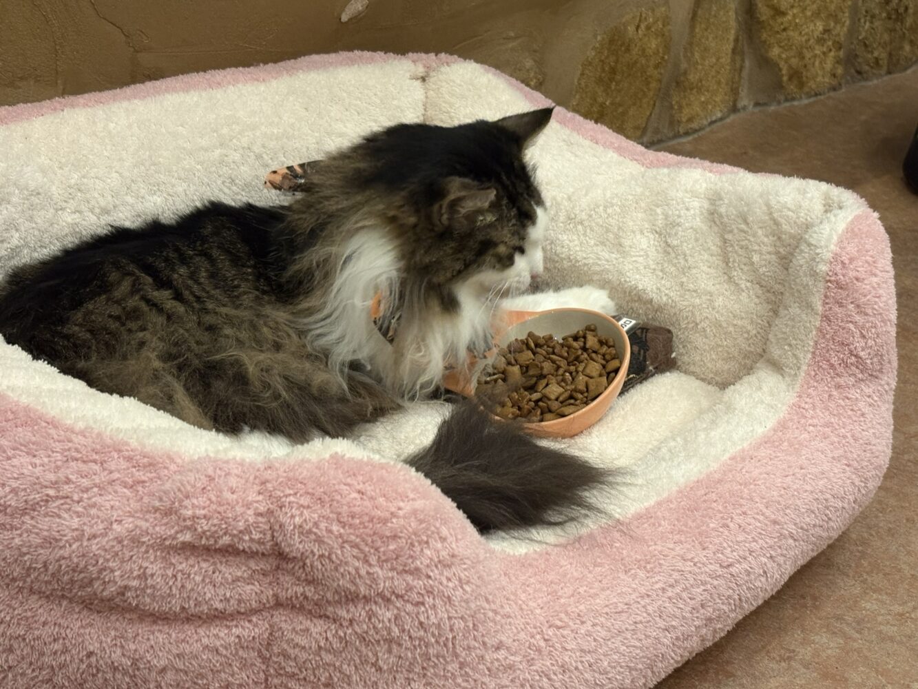 この猫ちゃんは、モフモフから一切動かないのでモフモフの中でご飯タイム🍚
