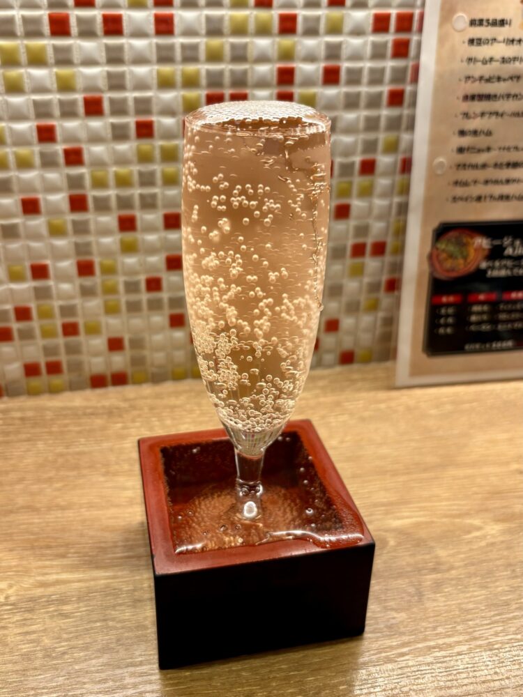 スパークリングワインが机にこぼれちゃうくらいたっぷる注いでもらえました!😳