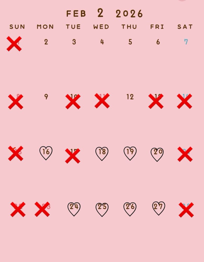 1.2.3月の空き予定↓