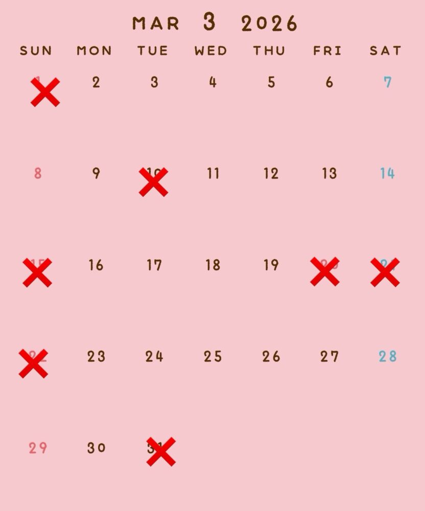 1.2.3月の空き予定↓