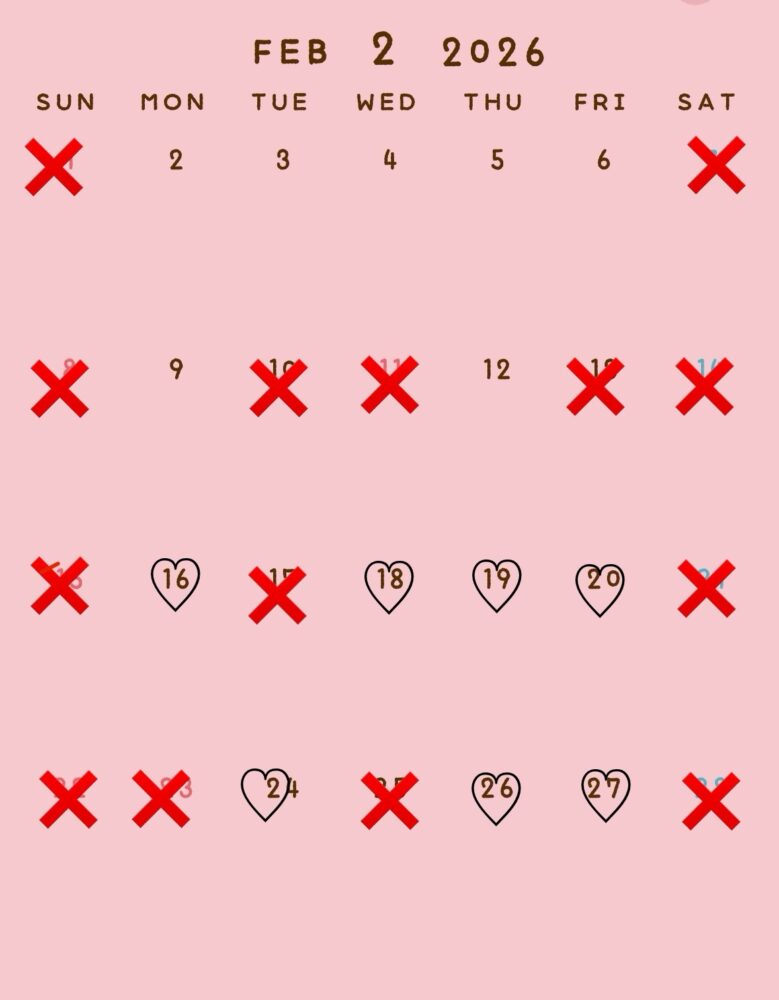 1.2.3月の空き予定↓