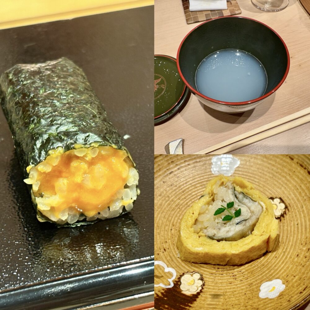 最後はうに手巻き、おすいもの、うなぎとだし巻き卵でした🥰