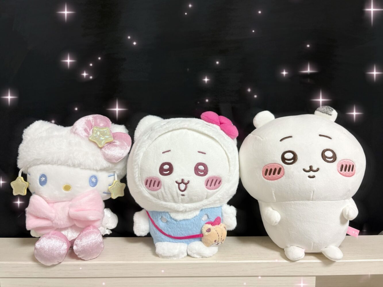 お部屋には推しのキティちゃんとちいかわのぬいぐるみたちがあります🥰