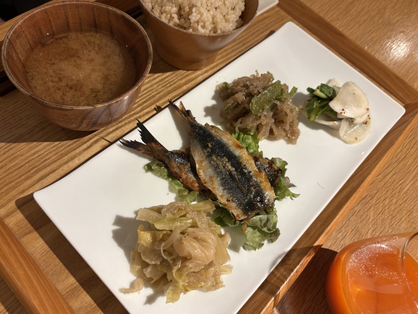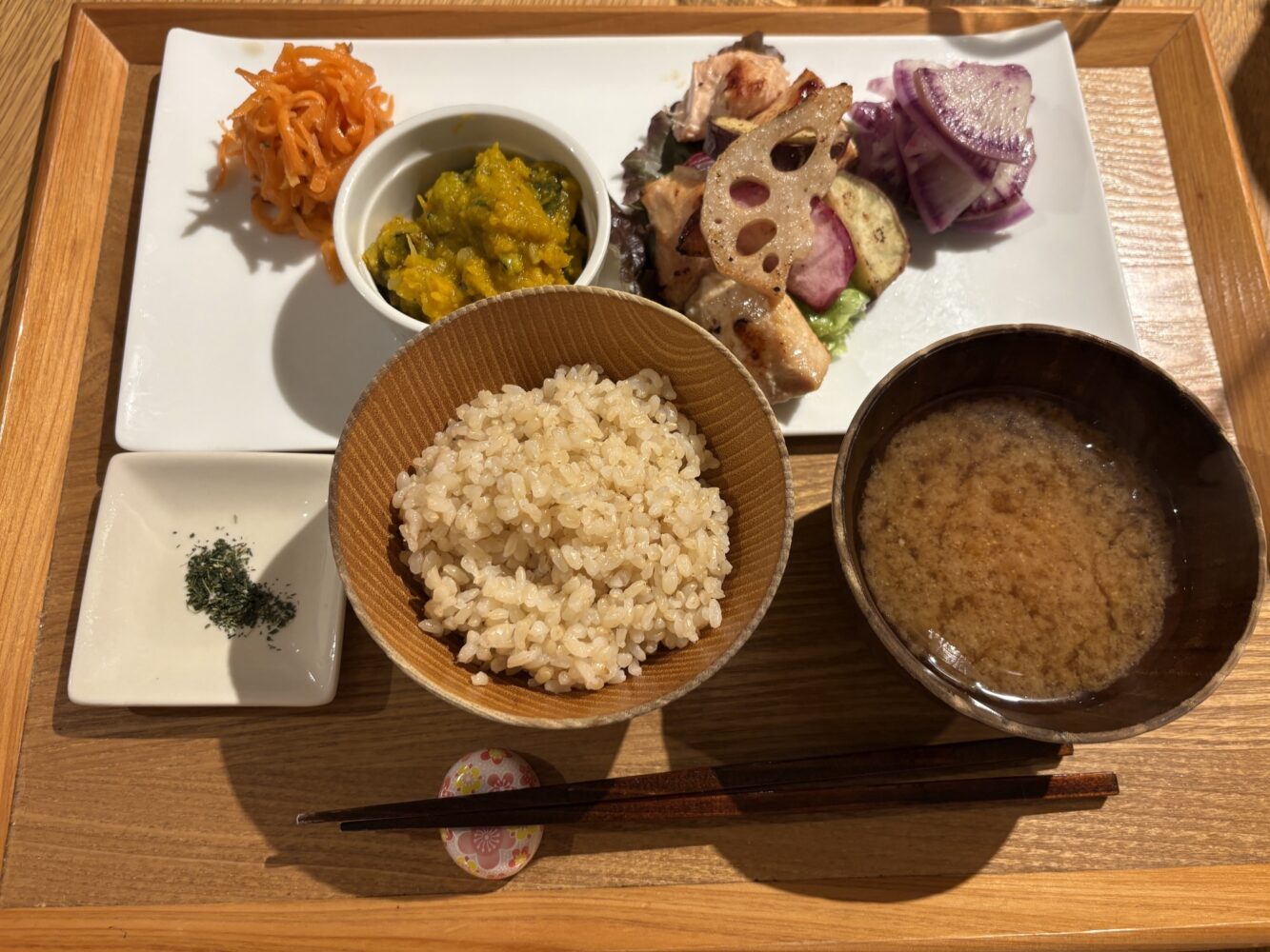 メニューがいくつかあって私はお野菜ゴロゴロ塩麹の胸肉がメインの御膳をいただきました❣️