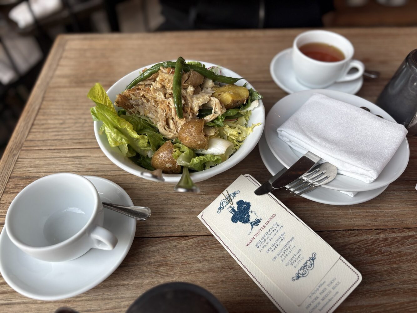 私は小麦が食べられないのでサラダをいただいたのですが、もう、、野菜もシャキシャキでチキンも柔らかい。ドレッシングの香りも爽やかで、こんな美味しいサラダってある?!ってくらい美味しくて、絶対またこよう!!と決めました😚🫶