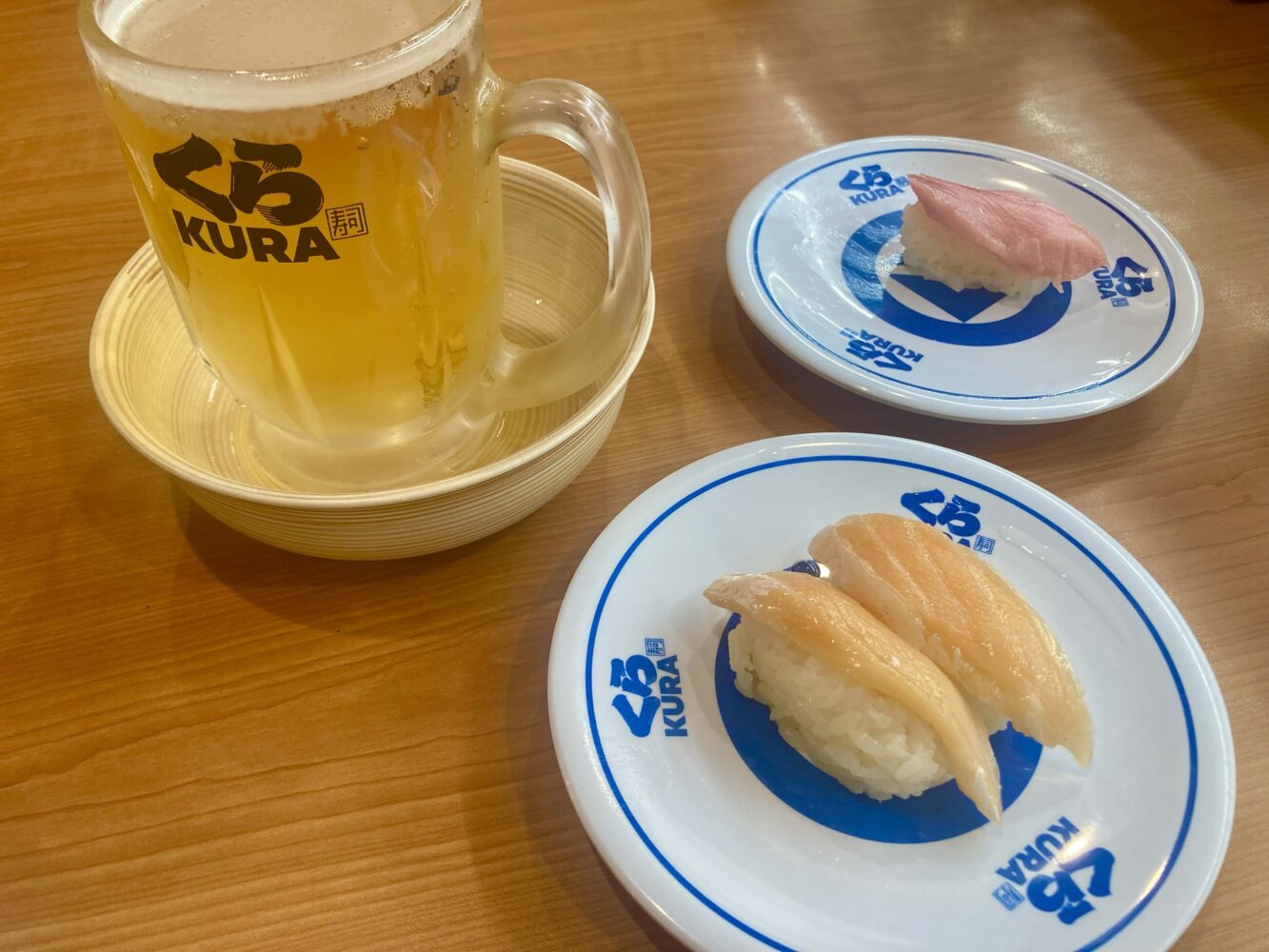 回転寿司自体久しぶりに来たのでテンション上がって、ビールも頼んじゃいました🍺