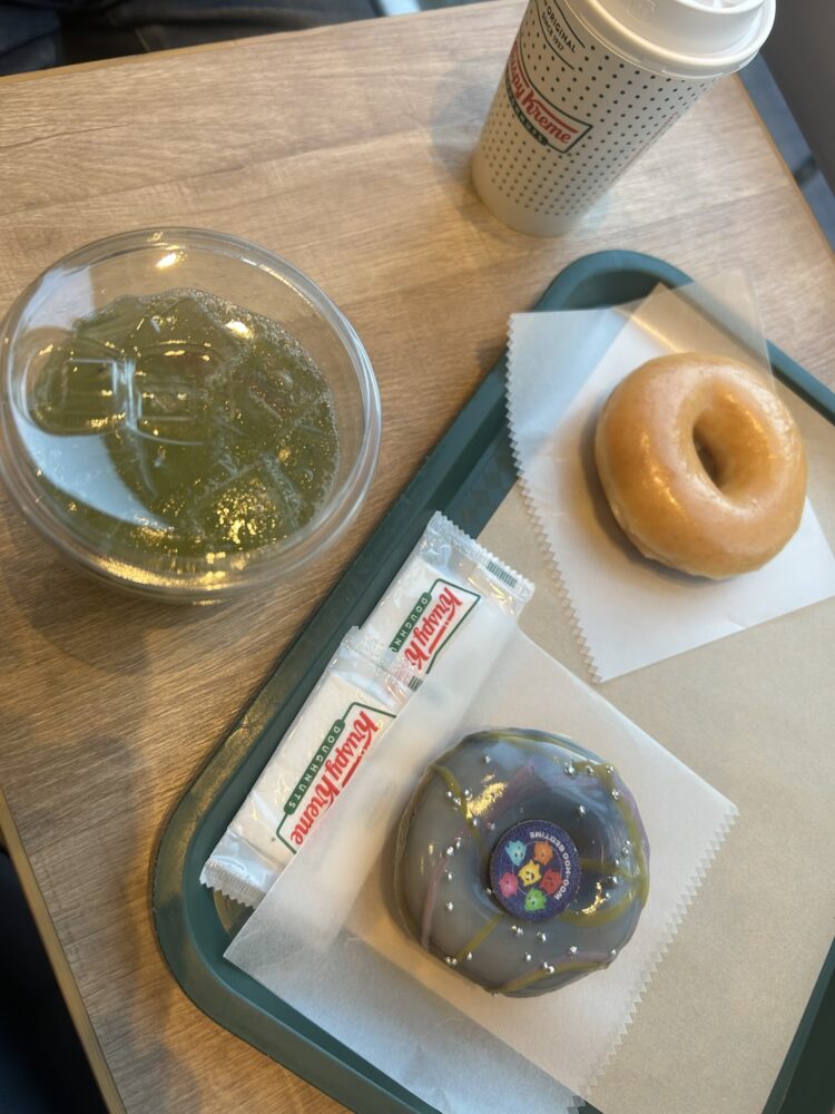 ブルーベリー味のドーナツで見た目も味も凄く新感覚で面白美味しかったです笑