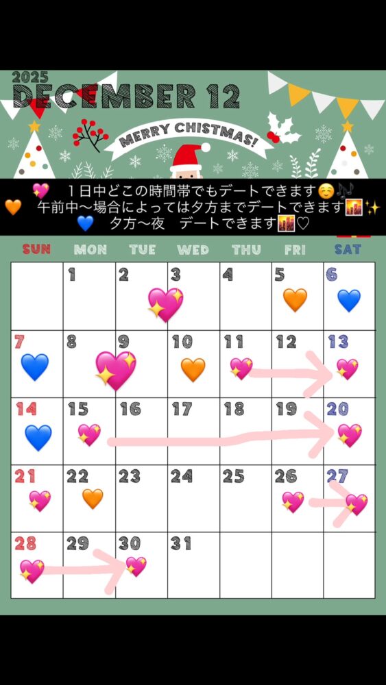 12月、まいと一緒に今年最後の素敵な思い出作りませんか?> ̫< ✨️